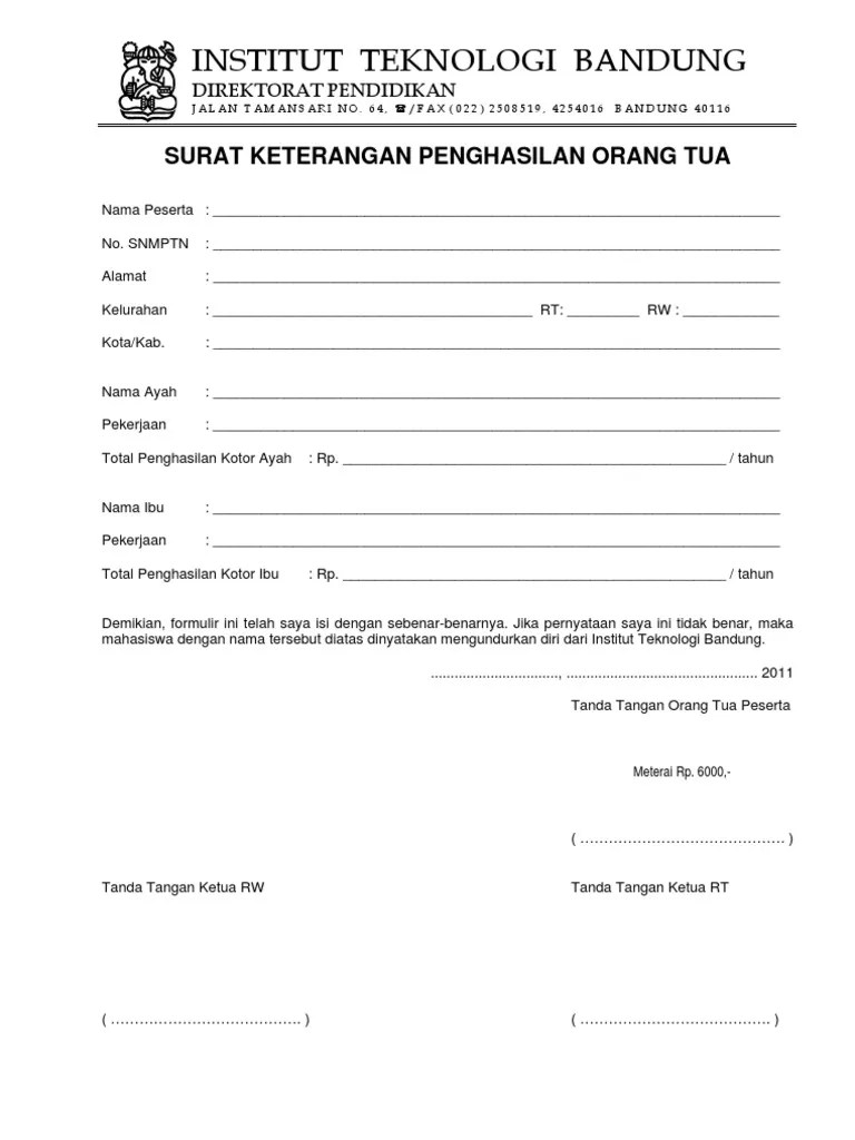 Surat Keterangan Penghasilan Orang Tua Untuk Ukt : Contoh Surat Keterangan Penghasilan Bruto Contoh Surat - Lampiran 1 dapat diunduh pada.